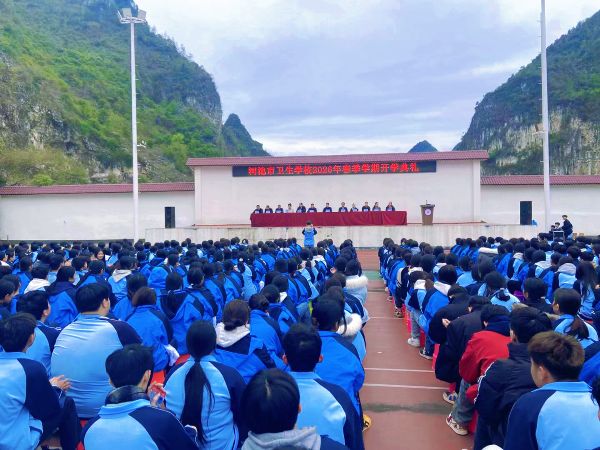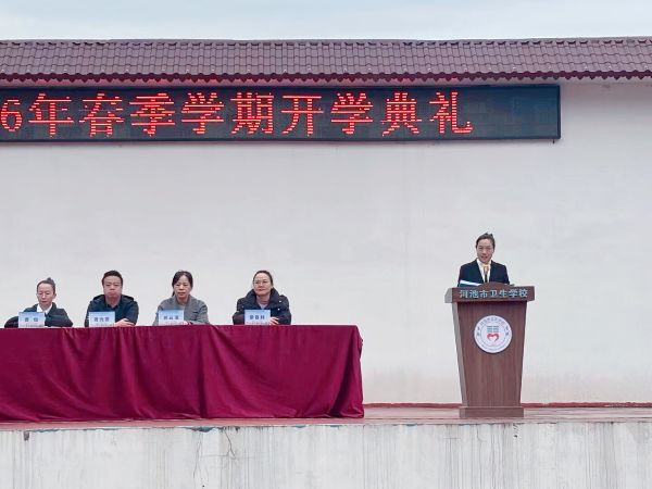 3月3日下午16时,河池市卫生学校2026年春季学期开学典礼在学校运动场举行。全体师生共计3000余人齐聚一堂,共同迎接新学期的启航。典礼由办公室主任曹也主持。