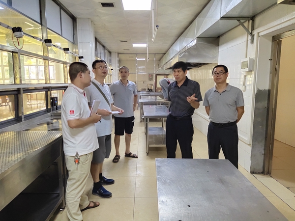 8月23日,一年一度的迎新工作即将拉开序幕,为迎接四面八方的新生,确保师生员工的饮食卫生安全,河池市卫生学校李翼校长、刘钢副校长、总务科江滨科长等一行人深入学校食堂,仔细检查操作间、仓库、餐厅等场所的开学准备工作,排查存在的安全隐患,了解部署工作的落实情况。