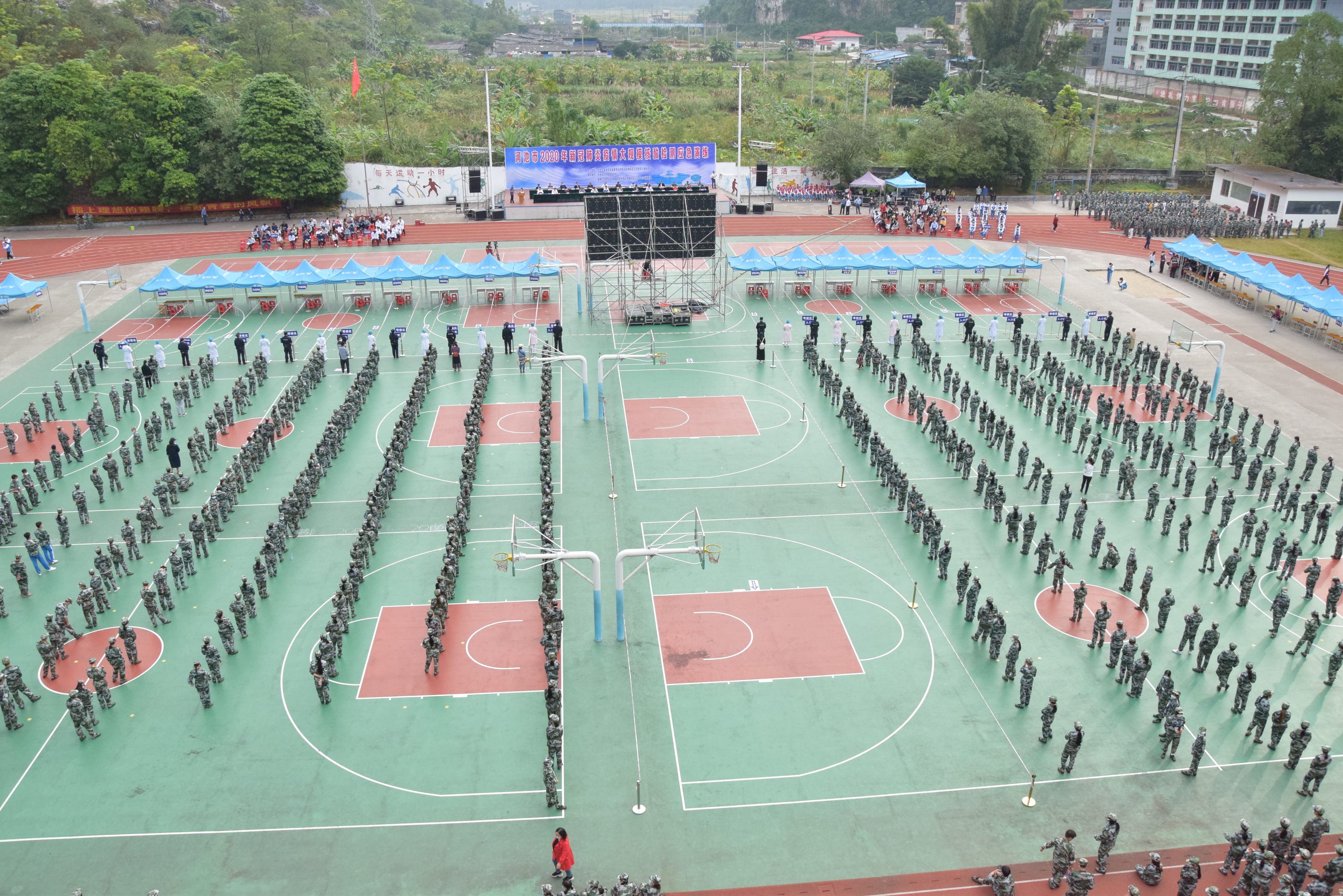 2020年河池市新冠肺炎疫情大规模核酸检测应急演练在我校举行