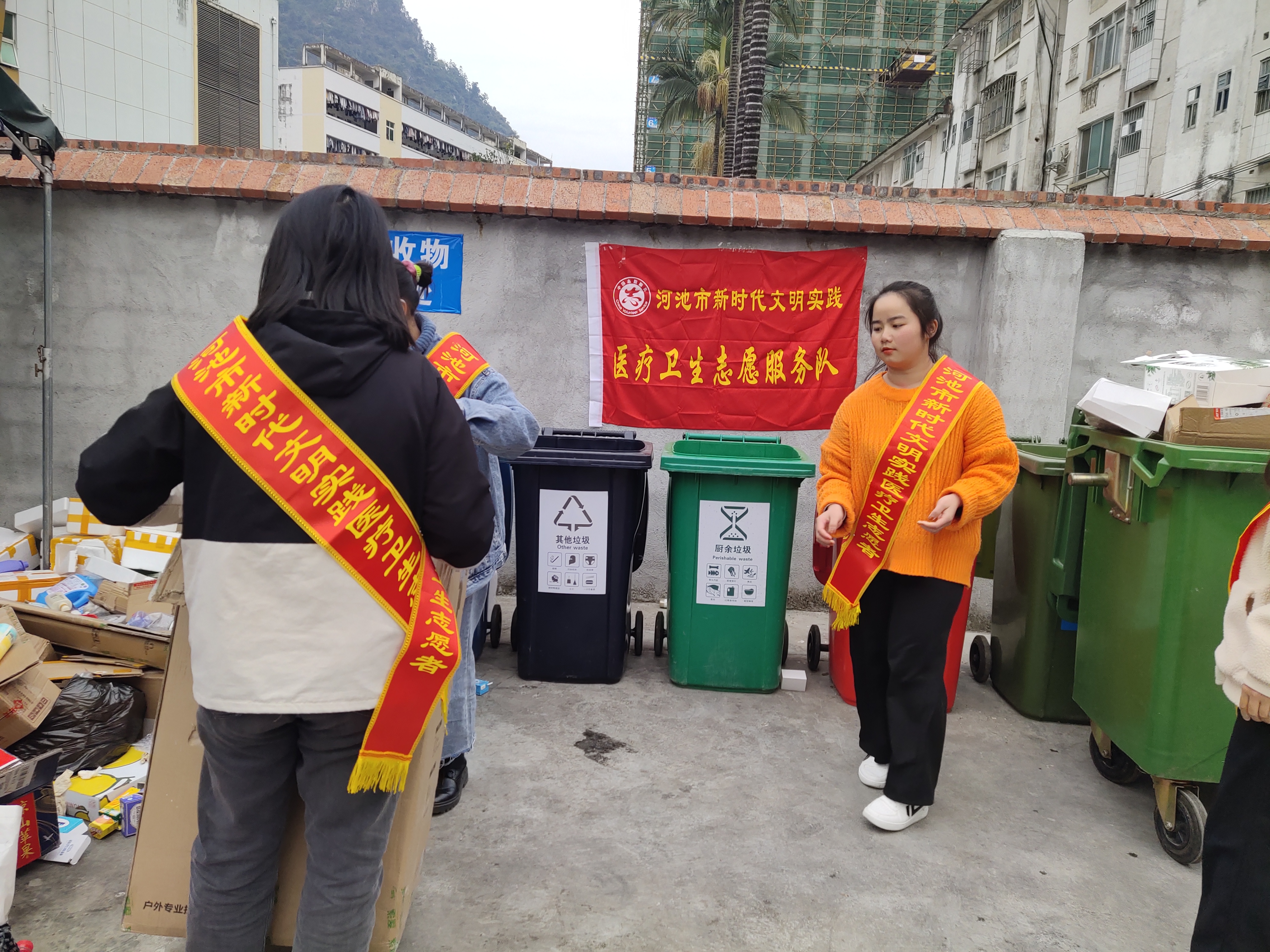 为深入落实上级部门关于垃圾分类的工作部署安排,推动校园垃圾分类管理工作,近期以来,河池市卫生学校开展了形式多样的宣传活动,利用校园广播、黑板报、宣传橱窗、主题班会、主题演讲、建立垃圾分类督导员等多种形式和载体,积极宣传垃圾分类知识,让学校全体师生对垃圾分类有更多的了解。12月22日,在学校教师志愿者的带领下,学生志愿者们来到学校垃圾处理池,及指导同学们如何做好垃圾分类。小至烟头,大至纸箱,一个也不放过,都按要求做好分类工作。