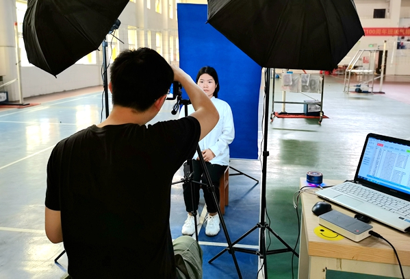 学生们整理好个人的仪容仪表,秩序井然地拍照。经过近两个小时的工作,共完成325位学生的照片采集,其中高职学生282人,函授教育学生43人。