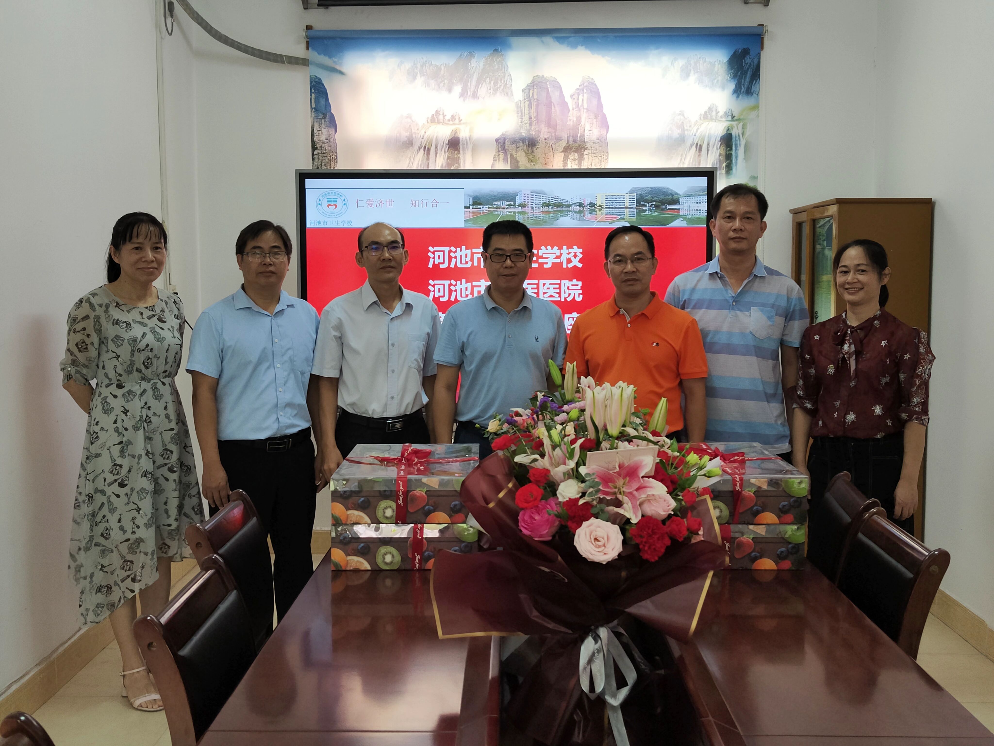 2021年9月10日上午,河池市中医医院副院长蒙如庆一行三人到我校开展教师节慰问活动,党总支副书记、副校长周轩,副校长刘钢,学生科科长苏云淑,教务科科长白震陪同。
