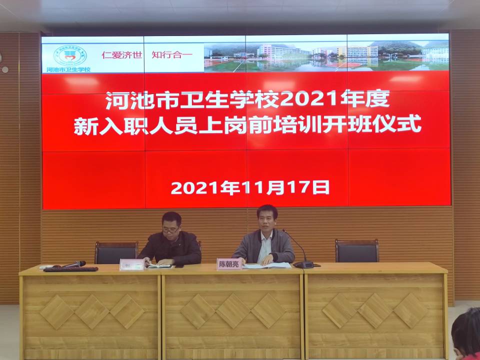 11月17日上午,我校2021年度新入职教师上岗前培训开班仪式在我校第四阶梯教室举行。党总支书记、校长陈朝亮、党总支纪检委员、副校长刘钢以及各科室负责人出席了开班仪式,10名新教师参加了开班仪式。