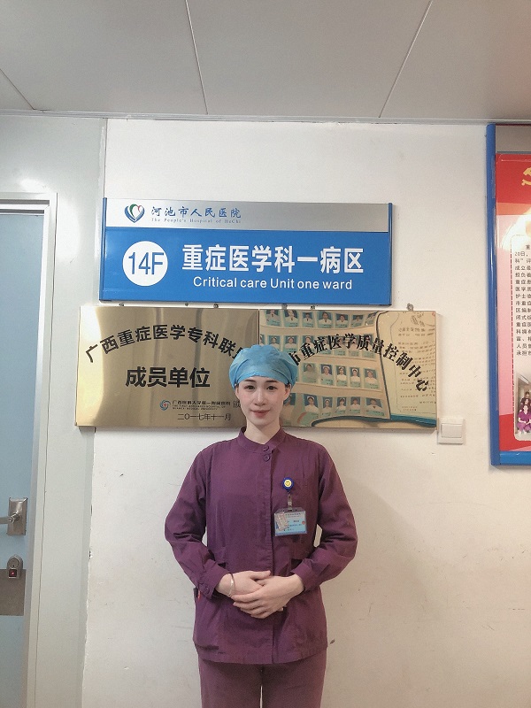 届高职护理毕业生覃彩赫现工作于河池市人民医院重症医学科一病区