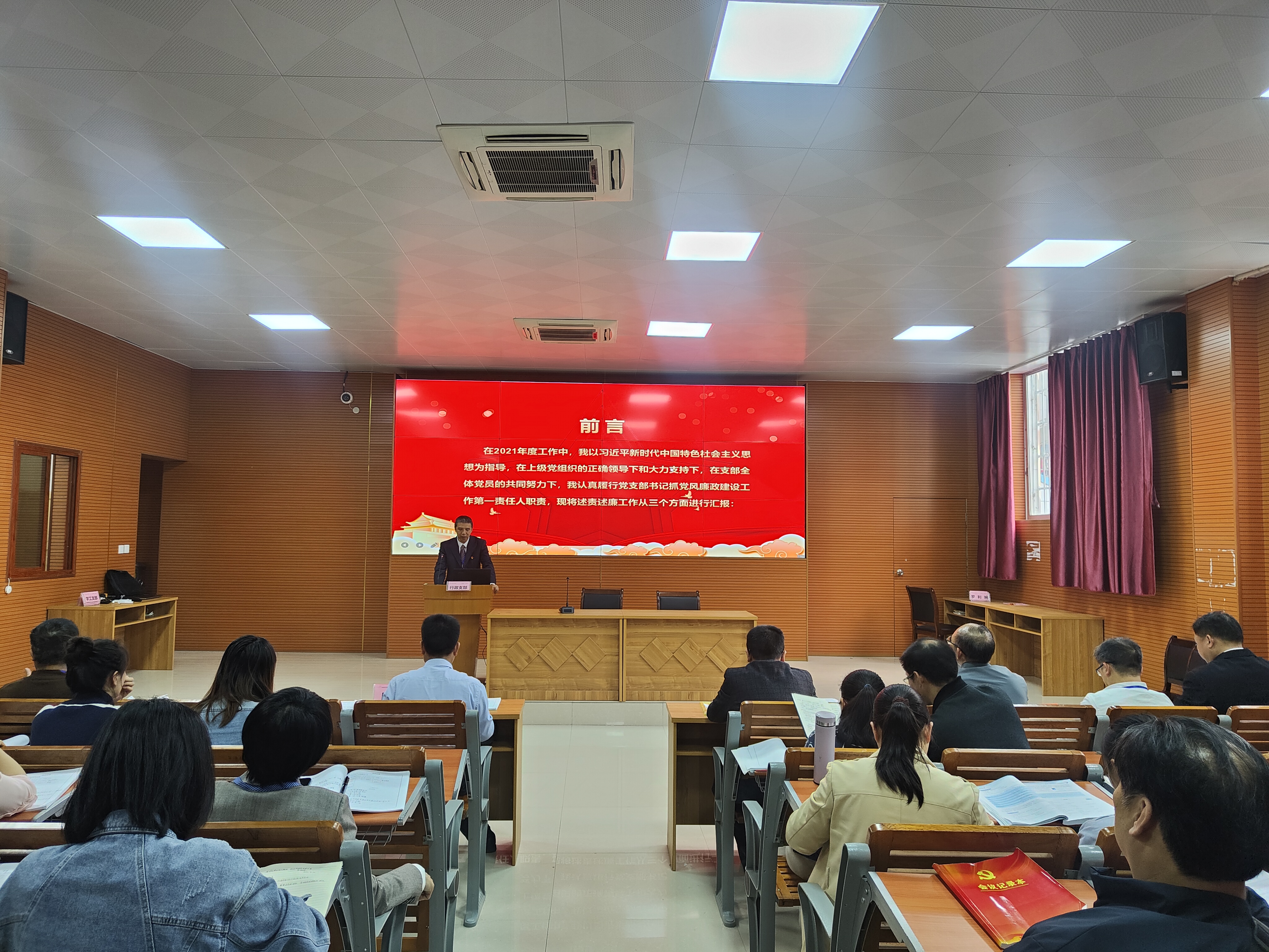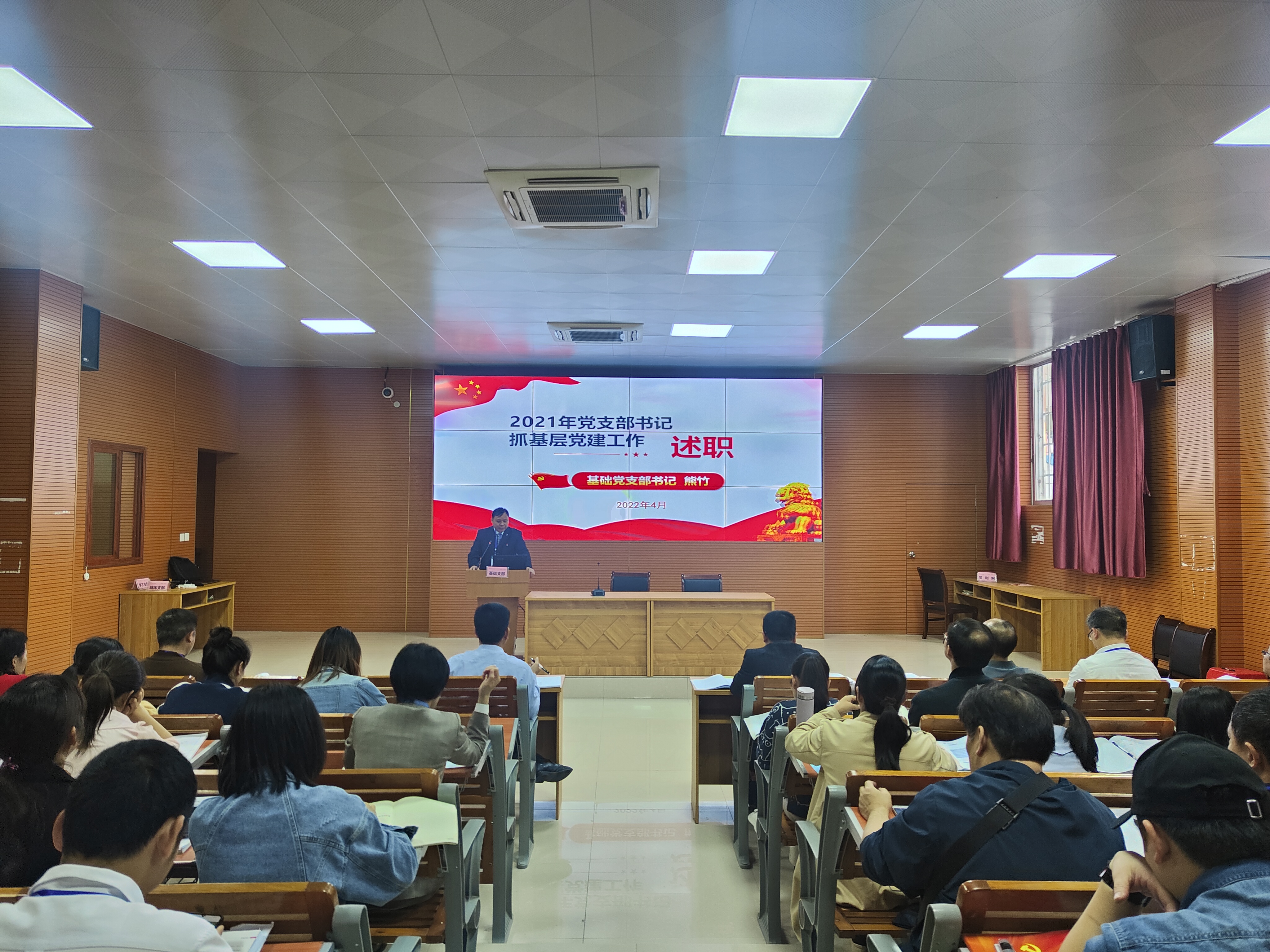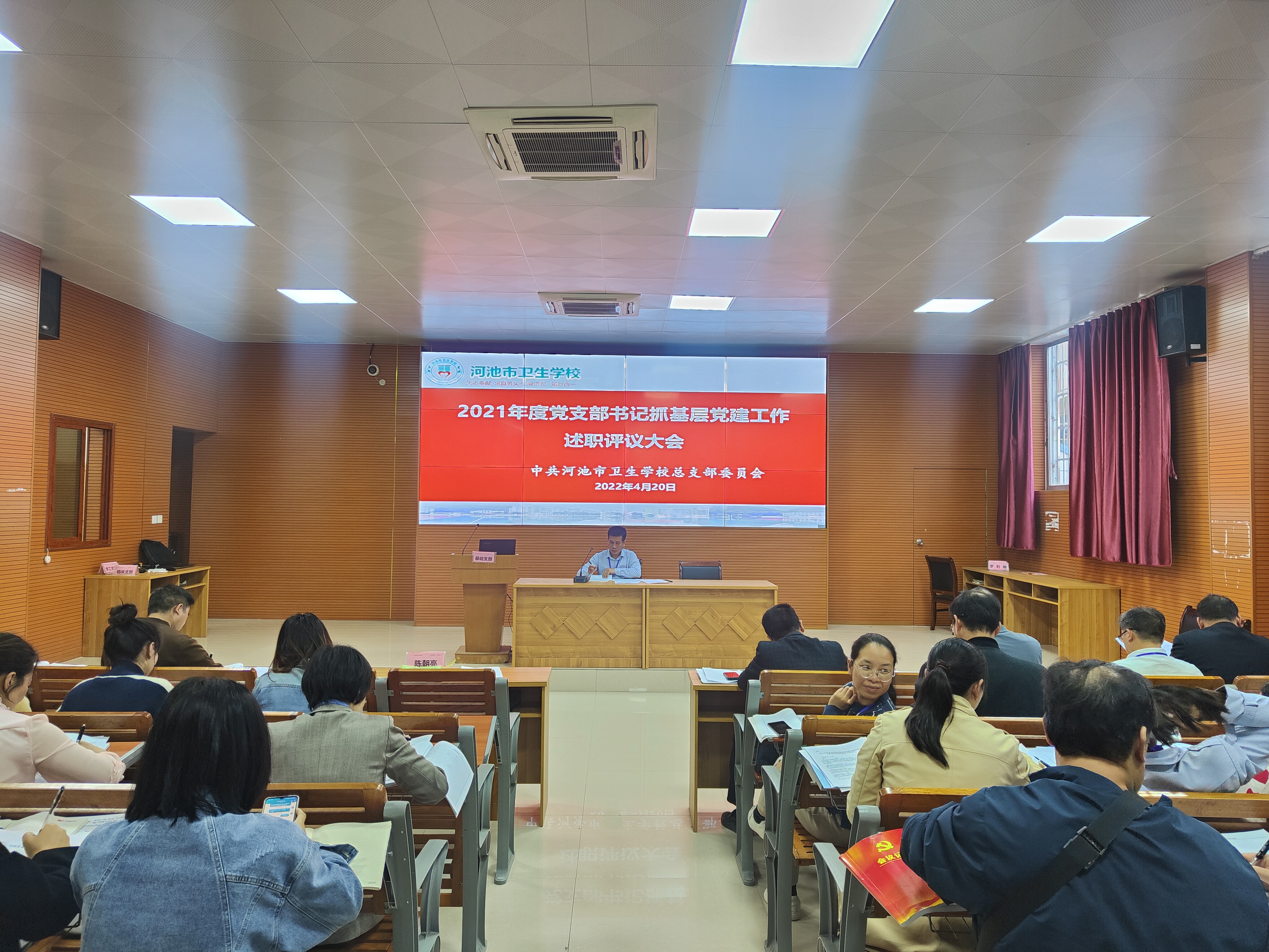 2022年4月20日下午,我校在第四多媒体教室召开2021年度支部书记抓基层党建和党风廉政建设工作述职评议大会,会议由学校党总支书记、校长陈朝亮主持,学校全体党员、预备党员、入党积极分子和入党申请人参加。