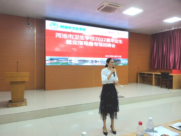 4月26日,我校在第四多媒体教室举行2022届高职护理专业毕业生就业指导暨专场招聘会。学校招就办主任黄鸿宇主持会议,高职办主任兰洪给毕业生们做就业动员及指导,2022届高职护理毕业班班主任也到场具体指导本班学生。