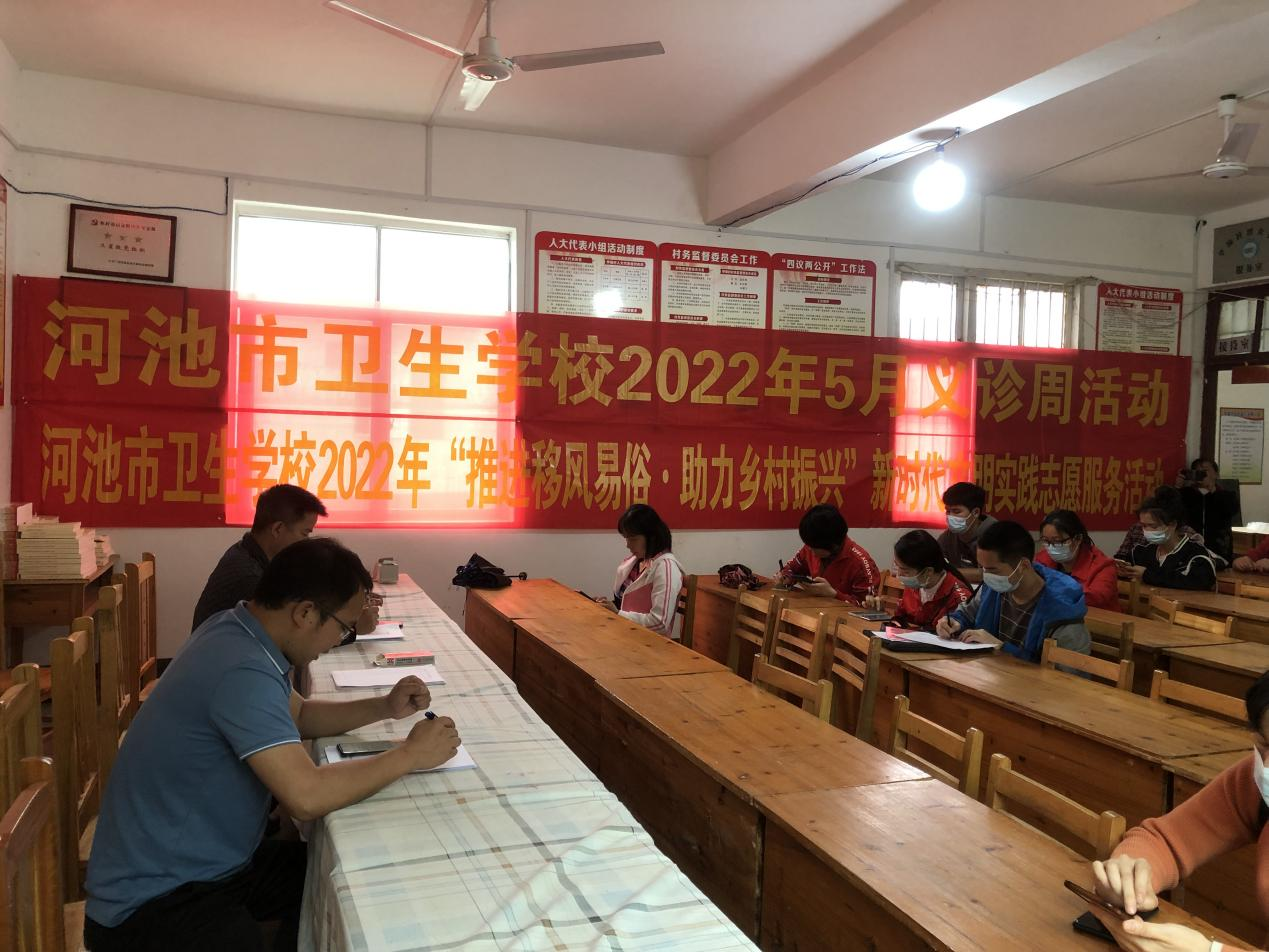 2022年5月9日,我校组织教师到南丹县六寨镇甲棉村开展新时代文明实践志愿服务暨卫生“三下乡”活动。