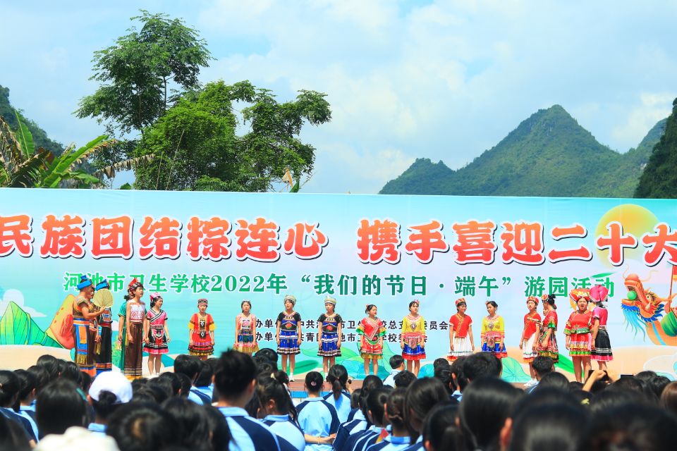 为厚植师生的家国情怀,弘扬传统文化,迎接党的二十大胜利召开。6月1日下午,我校在运动场举行了“民族团结粽连心 携手喜迎二十大”端午游园活动,全校师生参加了此次活动。