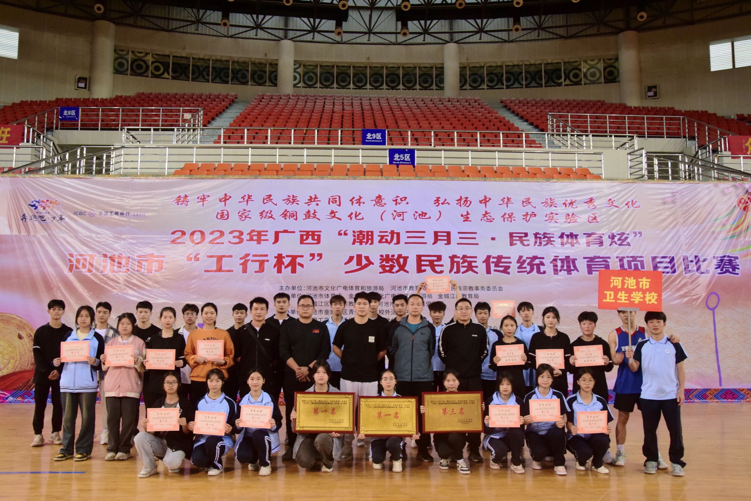 获奖合影留念 4月11日上午,2023 年广西“潮动三月三·民族体育炫”河池市少数民族传统体育项目比赛开幕式在河池市体育馆举行。来自…
