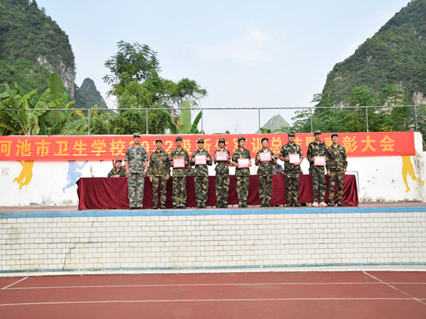 2022-09-129月9日下午,我校2022级新生军训总结暨表彰大会在学校运动场隆重举行。学校领导、各科室负责人、河池市金城江区人民武装部官兵和2022级全体班主任与学生出席本…
