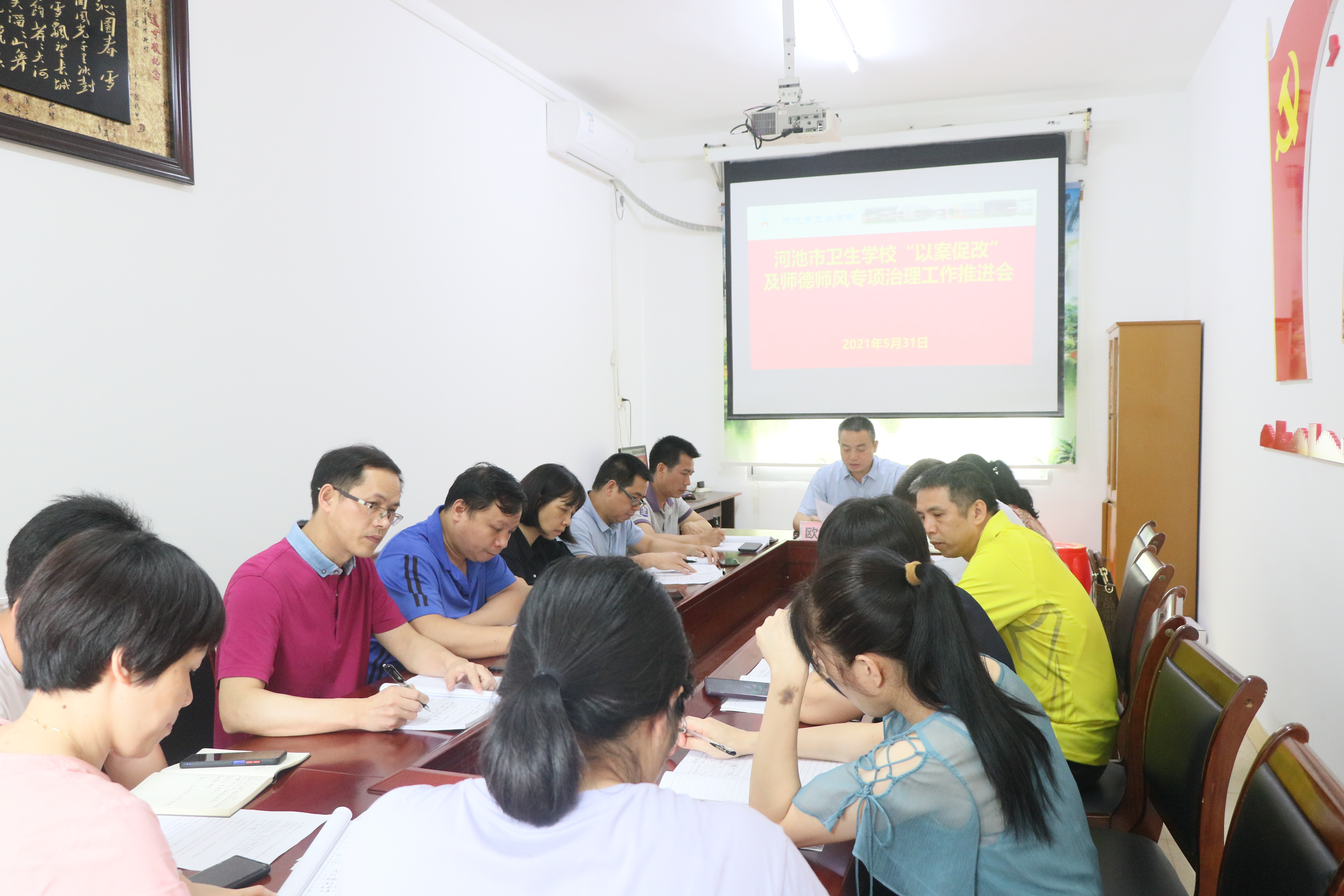 2021-06-185月31日下午15点30分,我校召开了“以案促改”及师德师风专项工作推进会,市纪委监委驻市卫生健康委纪检监察组组长欧红明、学校领导班子成员、科室负责人及教研室…